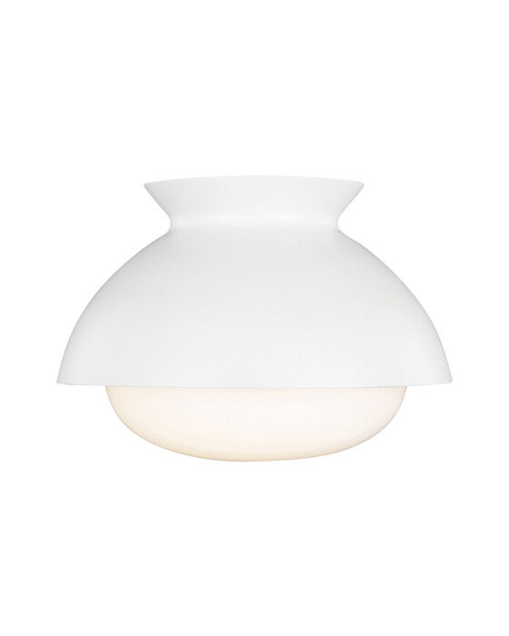 Lucerne plafond vit från Visual Comfort har en modern och minimalistisk design med en mjukt rundad form och en matt vit finish. Den eleganta opalglasskärmen sprider ett jämnt och behagligt ljus, vilket gör den perfekt för hallar, sovrum eller kök där enkelhet möter stilren elegans.