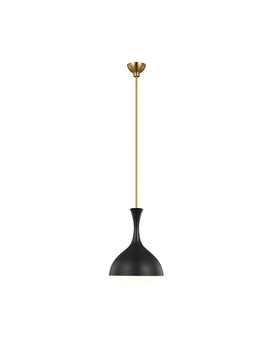 Lucerne takpendel svart från Visual Comfort har en elegant, modern design med en smal silhuett och en matt svart skärm kombinerad med detaljer i mässing. Den rundade formen ger ett mjukt, nedåtriktat ljus, perfekt för att belysa köksöar, matbord eller som en stilren accent i mindre utrymmen.