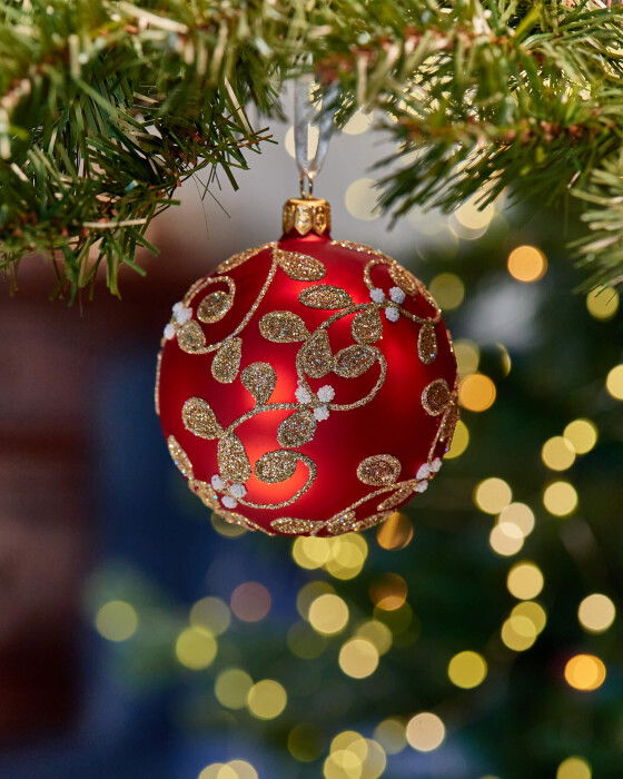 Skapa en förtrollande atmosfär i ditt hem med denna eleganta julgranskula i rött från Lux. Med ett vackert designmönster av löv i guld kommer denna handgjorda glaskula att ge din julgran en exklusiv touch. Perfekt för att skapa en genuin julkänsla i ditt hem.