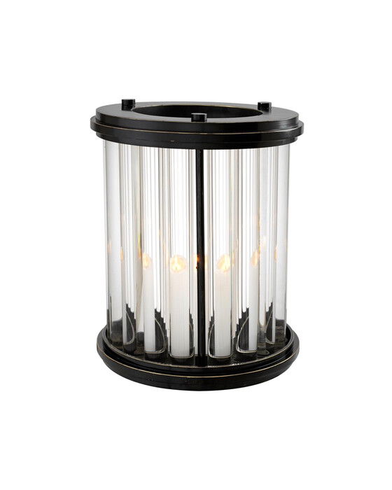 Skapa den perfekta stämningen med denna Art Deco-inspirerade lykta Ruhlmann som också är ett dekorativt blickfång under dagen. Genom att kombinera klassisk design med modern estetik utstrålar denna lykta tidlös elegans. Den har en bronsfinish och stavar i massivt klarglas som ger ett mjukt och varmt sken.