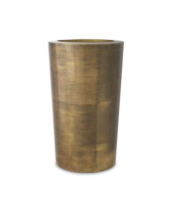 Den eleganta Maddox planteringslådan i mässing från varumärket Eichholtz är en stilfullt designad accessoar för trädgården eller terrassen. Med sina generösa mått på 60 cm i diameter och 99,5 cm i höjd ger den gott om plats för dina favoritväxter.