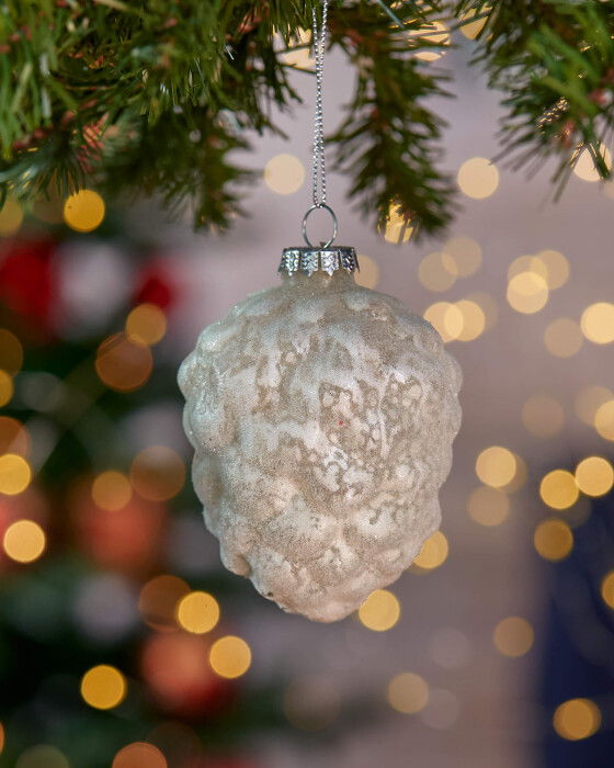 Maribel kotte julgransdekoration kombinerar naturens former med en gnistrande finish som för tankarna till frostiga vinterdagar. Den kottformade designen med glittrande detaljer sprider en elegant lyster och blir en vacker kontrast mot granens gröna grenar. En tidlös dekoration som passar lika fint i en klassisk julgran som i en mer modern inredning. Maribel är en glittrande detalj som förhöjer julens magi år efter år.