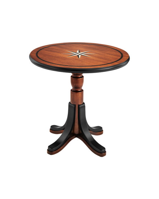Mariner Star sidobord är ett stilfullt och elegant bord med en vacker intarsia av en nautisk stjärna. Perfekt för att placera mellan två fåtöljer eller bredvid soffan för att ställa din dryck på.