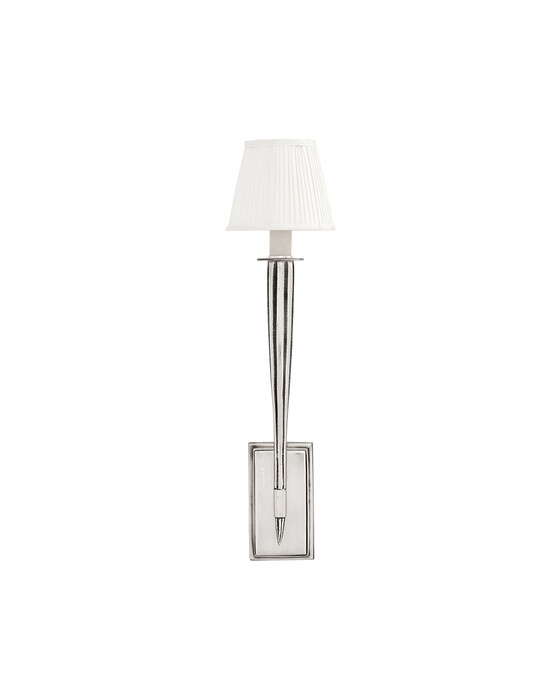 Mayflower vägglampa OUTLET är en elegant vägglampa med antik silverpläterad finish och en vackert veckad vit skärm. Denna outlet-produkt har en begränsad upplaga och kan ha mindre slitage eller repor, men inga större skador. Eventuella defekter kommer att meddelas med bildbevis för godkännande innan leverans.