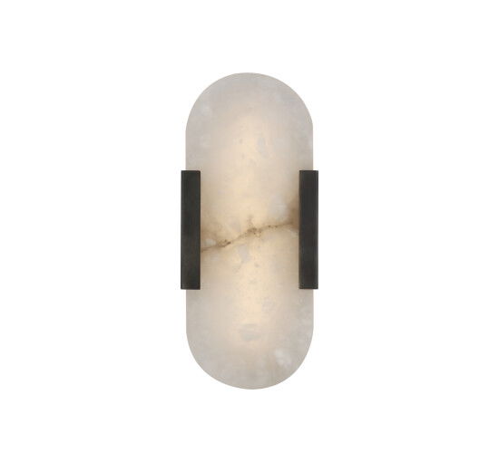 Den eleganta Melange 10″ vägglampan förlängd i brons är designad av Kelly Wearstler för Visual Comfort. Kombinationen av naturlig alabaster och metall skapar en modern estetik som passar olika interiörer. Med en snidad alabasterkupa som ger ett mjukt sken och detaljer i brons som tillför kontrast, är denna lampa både vacker och funktionell.