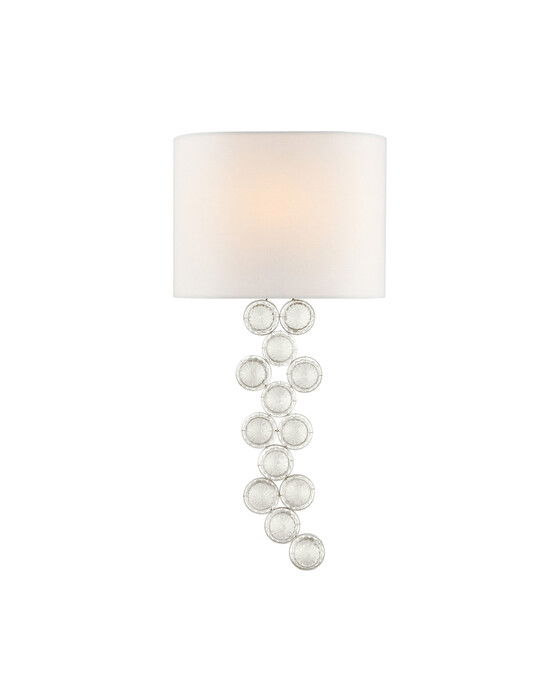 Utforska potentialen hos Julie Neills Milazzo vägglampa i silver. Med fasetterade glasknappar av munblåst glas ger denna lampa en modern och eterisk känsla till ditt rum.