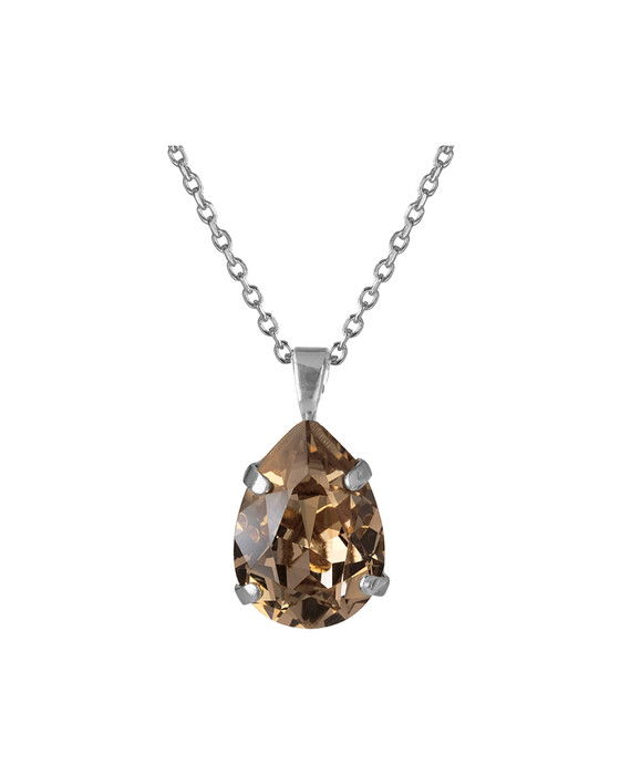 Mini Drop halsbandet i greige rhodium är ett vackert enstensberlock av finaste kristall. Det har en kejda på 50 cm och är tillverkat av rhodiumpläterad mässing. Smycket är handgjort av Caroline Svedbom och levereras i hennes signaturask.