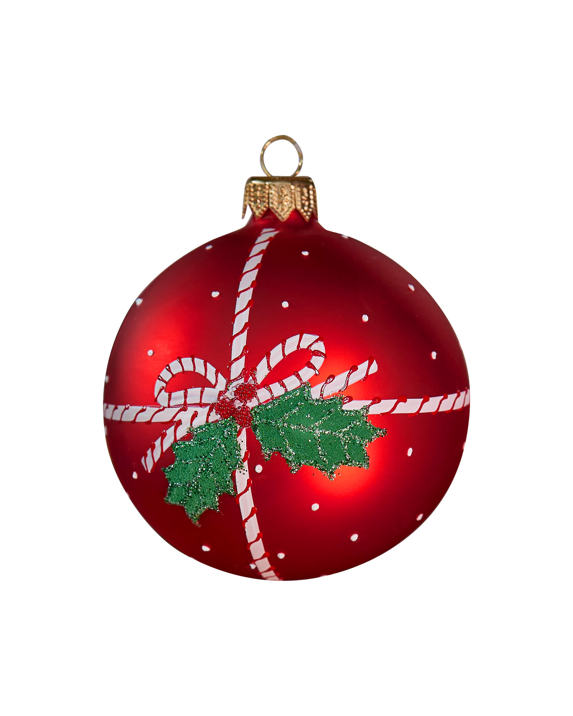 Miriam är en lekfull och festlig julkula som fångar julens magi. Den söta rosetten tillsammans med grön mistel gör kulan till ett härligt blickfång i granen. Med sin eleganta matta yta skapar den en harmonisk kontrast till glansiga dekorationer och bidrar till en varm och inbjudande helhet.