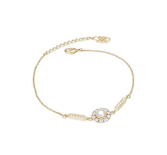 Miss Sofia armbandet från Lily and Rose är ett vackert armband i pläterad mässing med en pärla omgiven av glittrande kristaller. Det är en perfekt accessoar för både vardag och festliga tillfällen. Passa på att matcha det med andra smycken från samma kollektion.
