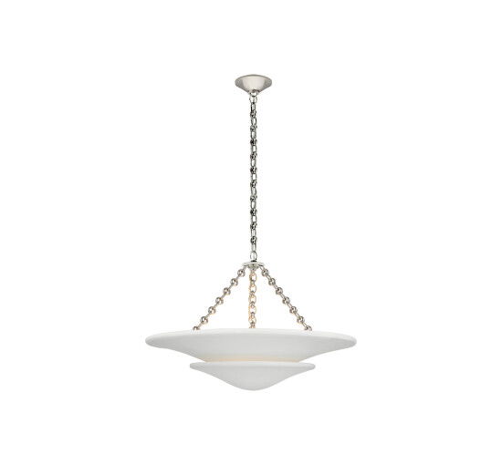 Utforska den tidlösa elegansen och moderna sofistikationen hos Mollino-serien från AERIN. Dessa skulpturala taklampor med plaster-finish är inspirerade av konst från 1930-talets Frankrike och ger en konstnärlig touch till ditt hem. Med smyckesinspirerad kedja blir varje lampa i Mollino-serien ett stilfullt smycke som sprider ett mjukt och inbjudande ljus. Passar perfekt i entréer, matsalar eller hallutrymmen och harmoniserar med både traditionella och moderna miljöer. Skapa en subtil och lyxig atmosfär med Mollino takkrona nickel M.