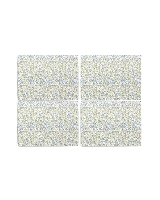 De vackra bordsunderläggen med William Morris klassiska mönster Willow kommer i en praktisk 4-pack. Tillverkade med skiktsystem inkluderande en korkbas, lövträ i mitten, och avslutas med en skyddande och slitstark film. Perfekta för att skydda ditt bord med stil. Rengör enkelt med en fuktig trasa.