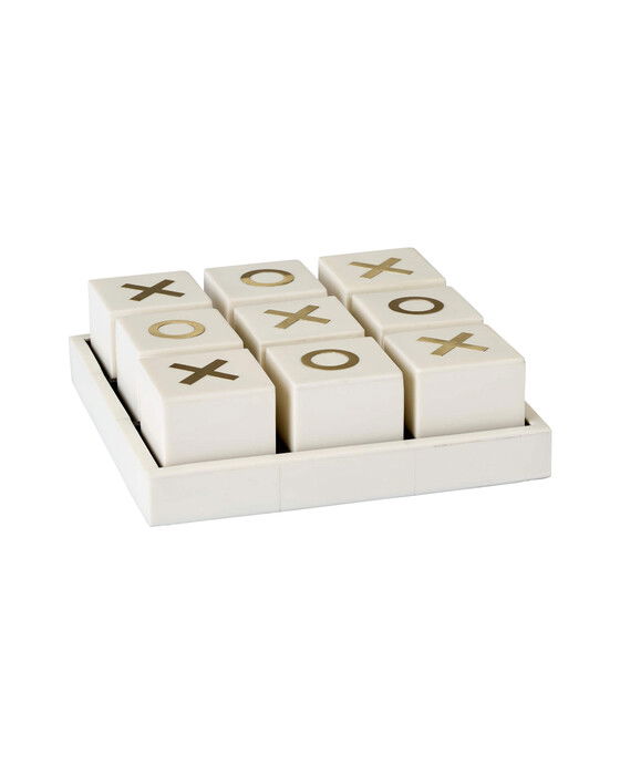 Designat för att vara både ett spel och en dekorativ detalj. De robusta kuberna med gyllene X och O ger en sofistikerad känsla, medan den minimalistiska basen gör att spelet smälter in perfekt i varje hem. Perfekt för att skapa trevliga stunder med familj och vänner, samtidigt som det fungerar som en stilsäker inredningsdetalj på soffbordet eller hyllan.