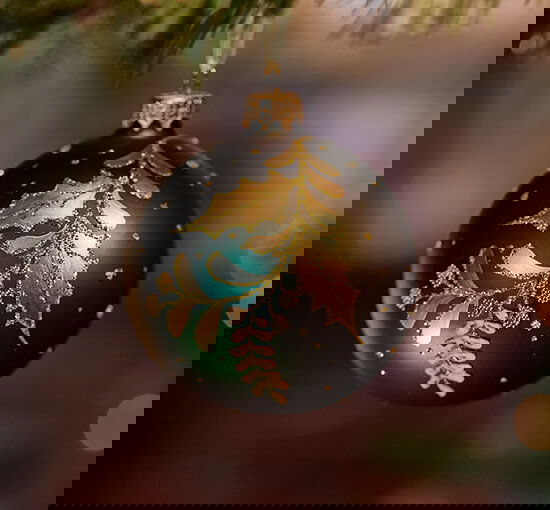 En härligt mossgrön julkula i glas med vackra kompletterande dekorationer i guld och glitter. Neva är en julkula som ger din gran det lilla extra och ger ditt hem en ombonad julkänsla.