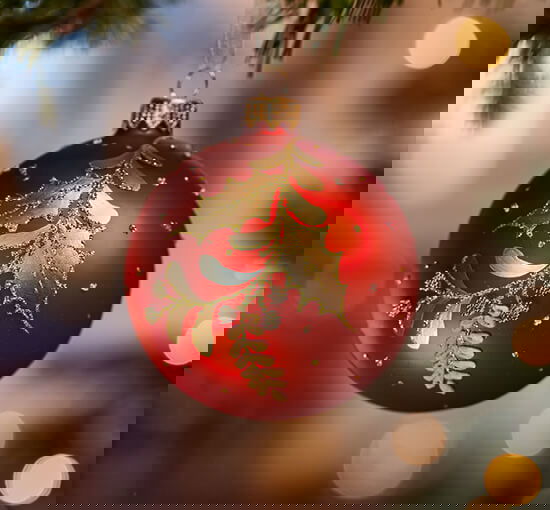 Ge ditt hem en magisk julkänsla med den eleganta julgranskulan i rött. Julkulan har ett vackert dekorativt guldmönster i ett julmotiv. Blanda gärna olika juldekorationer för att få en härlig blandning och personlig touch.