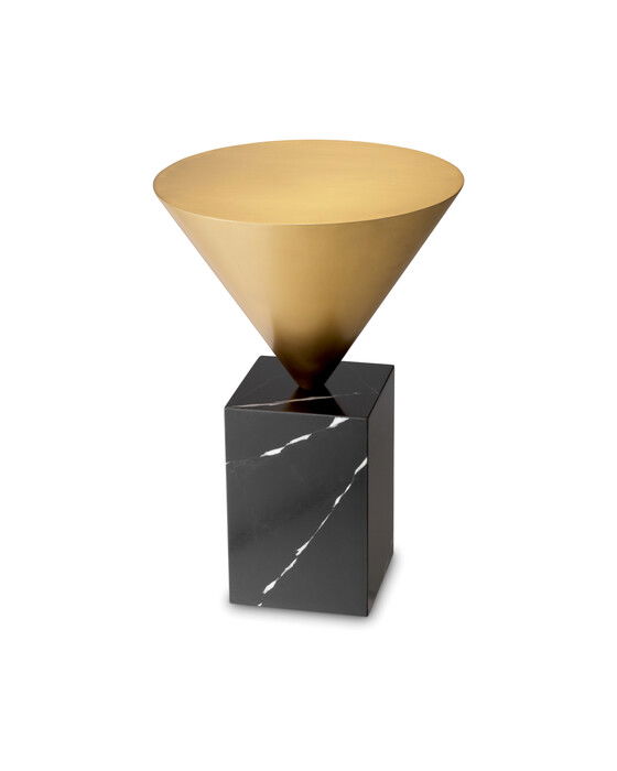 Nota sidobord från Eichholtz erbjuder en exklusiv blandning av material, med en stilren rund topp i svart marmor och en varm mässingsfinish. Dess sofistikerade silhuett förkroppsligar modern lyx och förhöjer vilket vardagsrum som helst med sin ikoniska design.