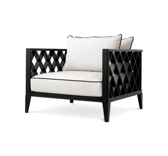 Upplev bekvämlighet och elegans i Ocean Club fåtölj. Denna exklusiva utemöbel från Eichholtz kollektionen kommer i svart, vitt och grönt och levereras med ljusblåa och vita dynor. Med sin sofistikerade design passar fåtöljen perfekt på din terass, uteplats eller trädgård. Dynorna är mjukt stoppade för maximal komfort och en skön sittupplevelse. Med en stomme av rostfritt aluminium kräver dessa möbler minimalt underhåll och är lätta att rengöra med en mjuk trasa. Dynorna är klädda i 100% sunbrellaakryl som är uv-ljusresistent, mögelresistent och vattenavvisande.