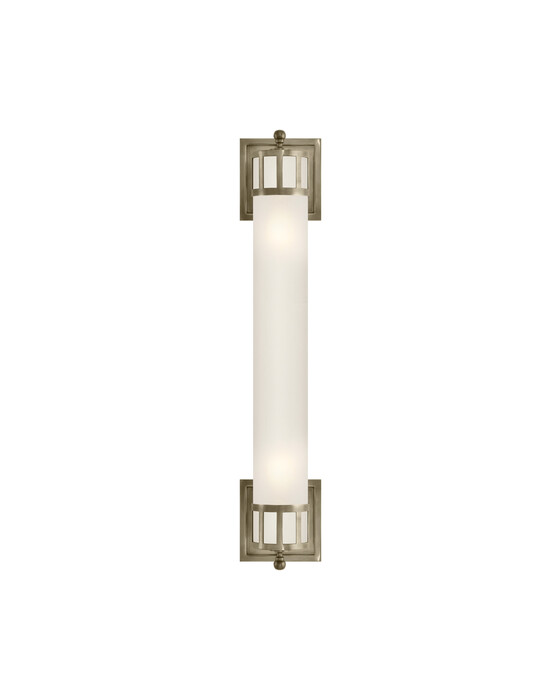 Openwork Long vägglampa i antik nickel med frostat glas är en elegant och stilren belysningslösning för ditt hem. Denna vägglampa ger ett behagligt ljus och sätter en sofistikerad touch i rummet.