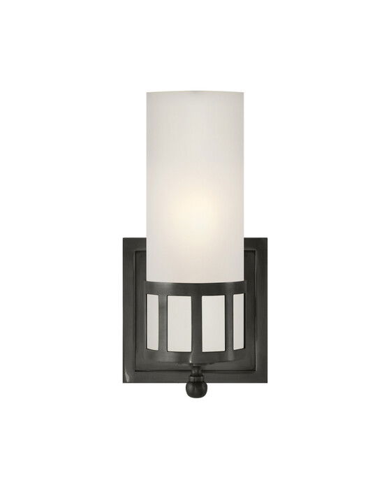 Den Openwork Single Sconce i brons med frostat glas är en elegant och stilren vägglampa som ger ett behagligt sken till ditt rum.