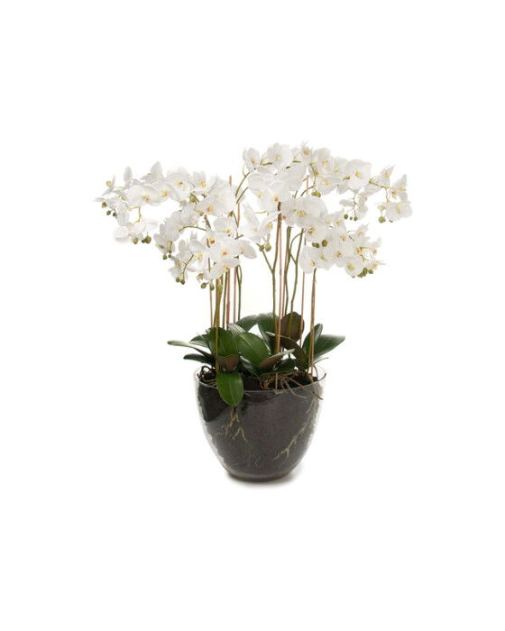 Skapa botaniska miljöer i ditt hem med denna konstgjorda orkidé i en vas av klarglas. Den har naturtroget utseende från rötterna till de klorofyllfyllda bladen och den blommande konstblomman.