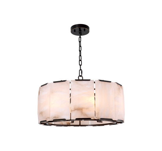 Ortiz takkrona är ett konstnärligt mästerverk som strålar av skickligt hantverk. Med en bronsfinish och noggrant facetterade alabasterpaneler skapas en fantastisk lek av ljus och skuggor som tar designen till nya sofistikerade höjder. Detta är den perfekta balansen mellan brons och alabaster som skapar en fängslande skönhet i ditt hem.