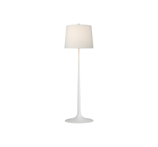 Oscar golvlampa vit från Visual Comfort är inspirerad av simpliciteten i en cirkel. Basen i spunnen metall smalnar av uppåt och ger designen vackra proportioner och balans. Lampskärmen i linne sprider ett mjukt, varmt ljus över hela rummet och den förfinade designen gör den perfekt för alla rum.