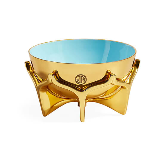 Oscar skålen från Jonathan Adler är gjord i massiv mässing med en rik blåemaljerade interiör och har inspiration från ”mid-century” arkitektur. Skålen är perfekt att placera på bordet med lite smått och sött eller på ditt nattduksbord för att förvara dina smycken. Jonathan och hans team designar och skulpterar varje prototyp för hand i sin Soho-studio. Sedan sandgjuts de i massiv mässing och poleras till perfektion för hand.