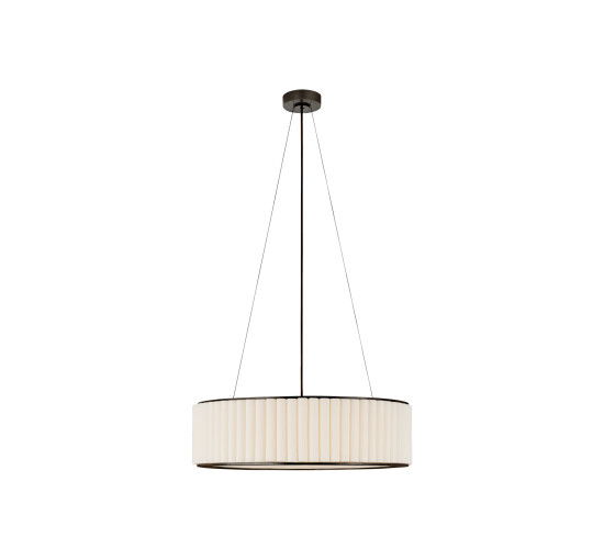 Palati taklampa brons från Visual Comfort har en elegant och modern design med en generös, plisserad skärm som skapar ett mjukt och behagligt ljus. De slanka metallstagen i kombination med den stilrena formen ger en sofistikerad känsla, perfekt för att lyfta matsalar, vardagsrum eller entréer.
