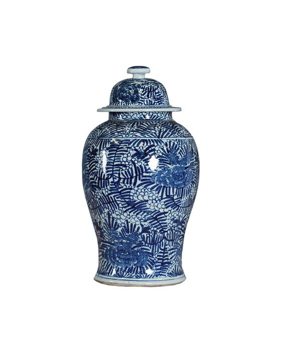 Dekorera ditt hem eller kontor med denna vackra blåvita Palm urna i porslin. Med sitt detaljerade motiv, gedigna uttryck och multifunktionella användningsområde passar den perfekt för blomsterarrangemang eller som en vacker dekoration på egen hand.