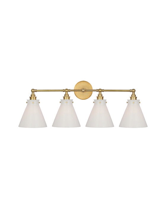 Parkington 32″ badrumsbelysning antik mässing/vitt glas