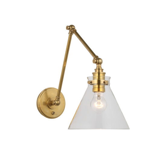 Visual Comforts Parkington vägglampa dubbel i antik mässing och klarglas är en del av den eleganta Chapman & Myers Parkington-serien som kombinerar industriell minimalism med distinkta arkitektoniska detaljer. Denna vägglampa är ett tidlöst och stilfullt tillskott till vilket rum som helst i ditt hem.