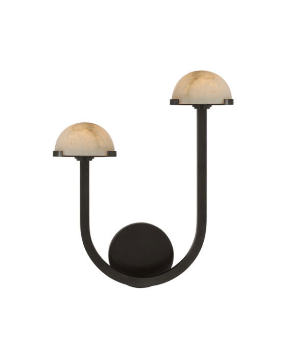 Denna ultra-moderna men ändå varma och välkomnande vägglampa från Kelly Wearstlers Pedra-serie visar upp eleganta metallformer som accentueras av den naturliga skönheten och mångsidigheten hos alabaster. Den kupolformade skärmen kompletterar både de linjära och rundade metallinjerna, vilket skapar simpel elegans och vackert kommer att belysa dina interiörer.