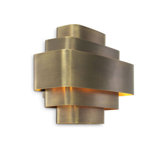Skapa vackra ljusaccenter i ditt hem med Pegaso vägglampa. Denna lampa i art déco-stil med böjda former och en vintage mässingsfinish ser särskilt högklassig ut. Det fungerar utmärkt i både traditionella och moderna interiörer, där den kommer att ge en bekväm atmosfär.