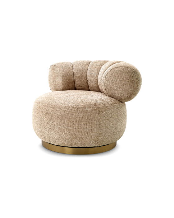 Phedra snurrfåtölj erbjuder en elegant modern design med en mjuk och bekväm sittplats. Klädseln i Lyssa Sand ger en harmonisk känsla till rummet och passar perfekt för att lägga till en sofistikerad stil i ditt vardagsrum, hall eller sovrum.
