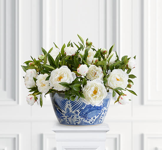 Denna naturtrogna konstgjorda pion i en klassisk vit färg ger en stilren och harmonisk detalj som passar alla rum i hemmet. Med fylliga blommor och frodiga gröna blad är denna konstväxt en perfekt inredningsdetalj.