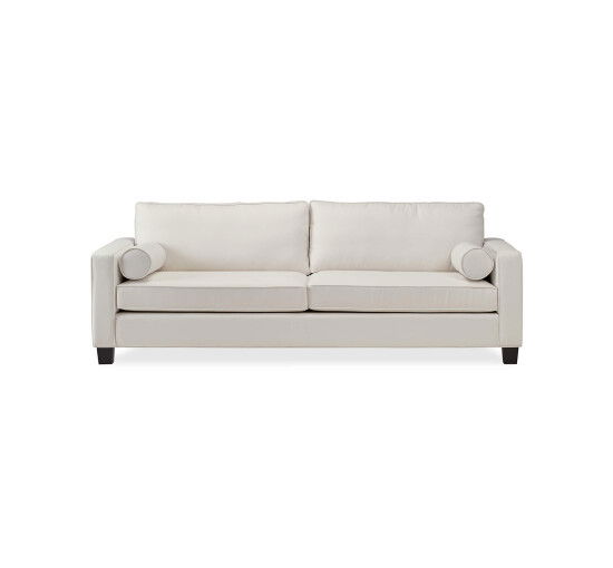 Plaza soffa är en elegant nyhet från Newport Premium Furniture. Dess klassiska uttryck och rena linjer gör att den passar in i många miljöer och hem. Soffan har en gedigen stomme av trä och en sittdyna av pocketfjädrar, som vanligtvis även används i sängar för hög komfort. Ryggdynan består av silikon och hela soffan är klädd i ett tyg av 100% polyester i en härlig sandnyans. Detta ger Plaza en bekväm och mjuk känsla där du vill spendera många timmar. Klädseln på kuddar, sitt- och ryggdyna är avtagbar. Vid tvätt av klädseln rekommenderas kemtvätt. Notera att våra möbler är handgjorda och därmed kan variera något i storlek.