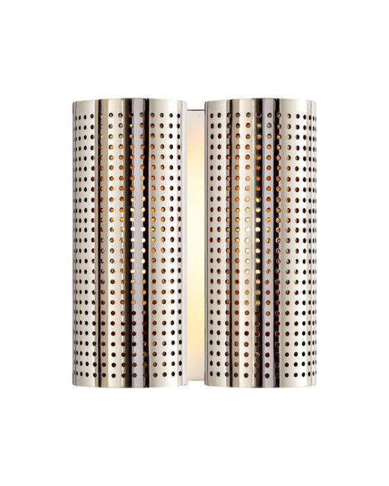 Kännetecknad av sin signatur, perforerad metall, utforskar Kelly Wearstlers Precision-serie den harmoniska relationen mellan ljus och form. Serien, med sina djärva arkitektoniska linjer, inkluderar både minimalistiska silhuetter och uttalande former. De moderna designerna sprider och reflekterar ljus för att lägga till subtil textur och djup till interiörer.