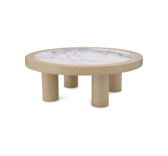 Discover the allure of the Presedio Coffee Table, where washed oak veneer elegantly frames a Bianco Lilac marble inlay. This high-end piece captivates with its rich textures and sophisticated design, making it the perfect embodiment of luxury and style. Elevate your space with this timeless addition crafted from exquisite materials.