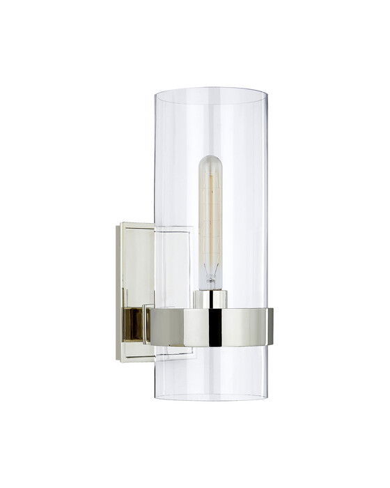 Presidio Small Sconce in Polished Nickel with Clear Glass är en elegant och stilren vägglampa från Visual Comfort. Denna vägglampa är tillverkad av högkvalitativa material och har en snygg design som passar perfekt i de flesta rum.