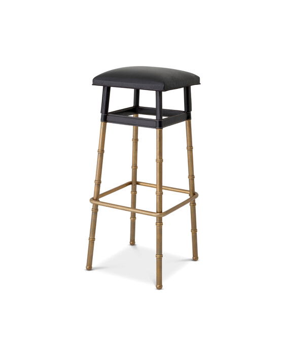 Den eleganta neoklassiska barstolen Princess från Eichholtz är designad med ben i mässing och en vadderad sits i svart läder. Den ger en känsla av klassisk elegans som passar perfekt in i rum med både modern och klassisk inredningsstil.