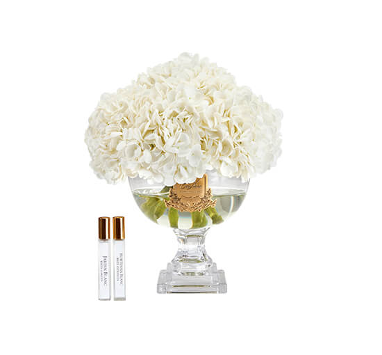 Det vackra Provence Hydrangeas gåvoset är en perfekt present för någon som älskar blommor och doftande inredning. Denna bukett av högkvalitativa konstblommor i glasvas sprider en underbar doft i rummet och blir en vacker mittpunkt varhelst den placeras.