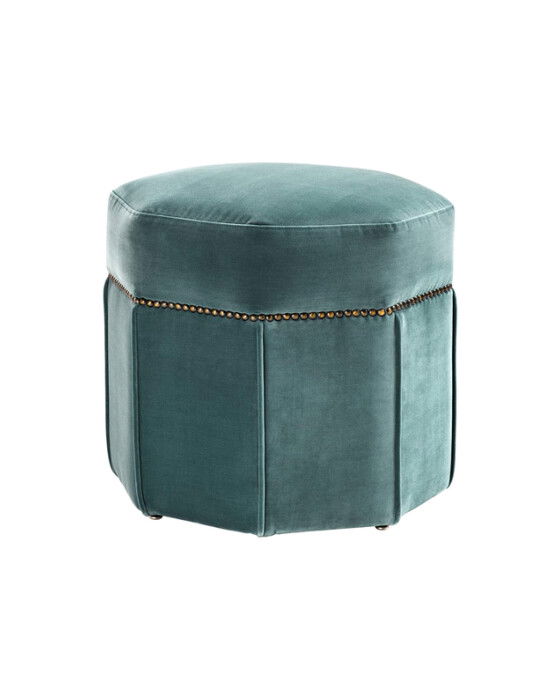 Den eleganta Puff Bombay från Eichholtz i en snygg turkos färg är dekorerad med mässingsspikar och ger en touch av lyx till ditt hem.
