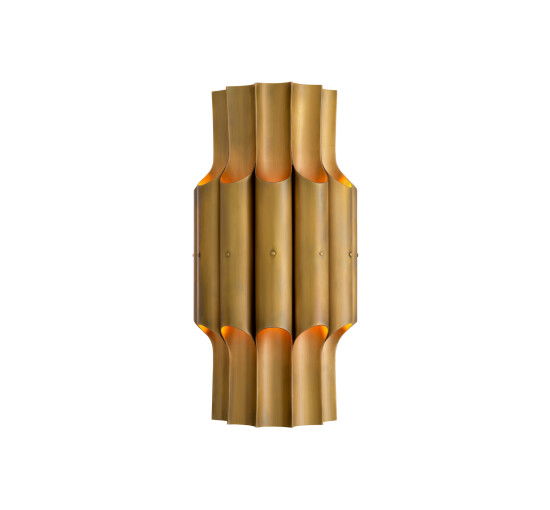 Den eleganta Quintara vägglampan i vintage mässing är en perfekt kombination av stil och funktion. Med sitt unika design och varma ljus skapar den en atmosfär av charm och elegans i vilket rum som helst.