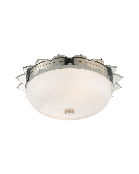 Denna elegant taklampa sprider en varm känsla i hela rummet med sin design av glas och mässing, dekorerad med en kant som liknar blomblad eller solstrålar.