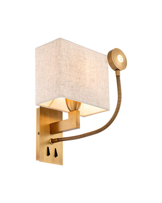 Skapa en intim och romantisk atmosfär med Reading vägglampa i antik mässing. Denna eleganta vägglampa ger ett varmt och inbjudande sken med en huvudlampa och en flexibel LED-läslykta för att skapa den perfekta atmosfären.