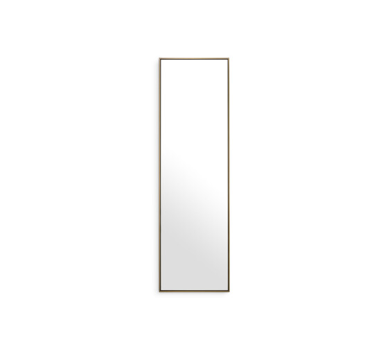 Den rektangulära spegeln Redondo är en slående och enkel spegel med en smal metallram i borstad mässingsfinish. Med vertikala och horisontella upphängningspunkter kan denna fantastiska väggspegel hängas stående eller liggande, vilket ger ljus och en känsla av utrymme till alla rum utan att orsaka för mycket distraktion.