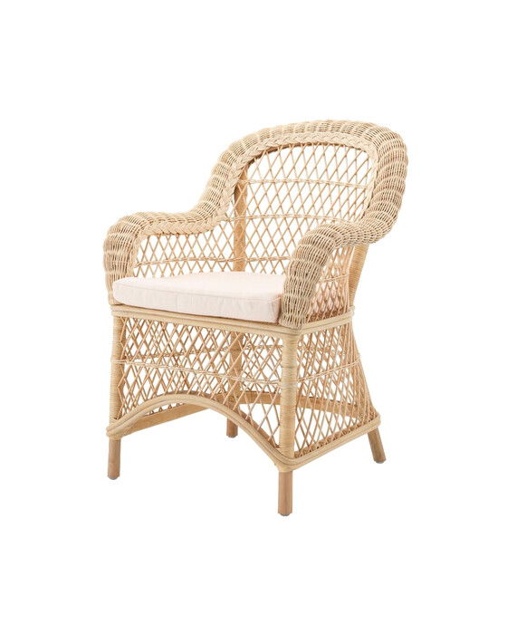 Residence är en bekväm kurvad karmstol som passar utmärkt till ett elegant matbord för uterummet. Den robusta ramen är flätad av ljus rotting, och den mjuka vita sittdynan gör att du sitter bekvämt mot den vackra öppna ryggen. Denna outlet-produkt finns i begränsad kvantitet och kan ha mindre slitage eller repor. Var noga med att besiktiga eventuella defekter innan leverans.