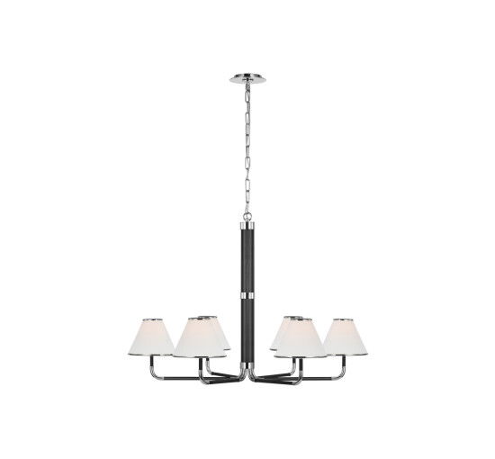 Den eleganta Rigby-serien av Marie Flanigan erbjuder en linjär design med modern skönhet. Accentuerad med naturligt ekträ och polerad nickel, skapar denna takkrona ett imponerande intryck i vilket rum som helst i ditt hem.