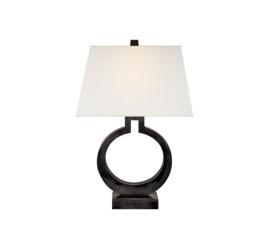 Ring Form bordslampa i brons är en elegant och stilig lampa som kommer att lysa upp ditt rum med stil. Med sina mått på 45,7 cm i bredd och 68,6 cm i höjd passar den perfekt som en belysningslösning på skrivbordet eller nattduksbordet.