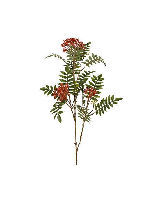 Denna naturtrogna konstgjorda rönn ger ditt hem ett vackert inslag av höstens färgprakt. Med sina realistiska röda bär och detaljrika bladverk skapar den en varm och inbjudande atmosfär. Rönnen kräver inget underhåll, vilket gör den till ett enkelt och stilrent inslag i vasar eller som en del av större arrangemang. Observera att denna produkt säljs styckvis.