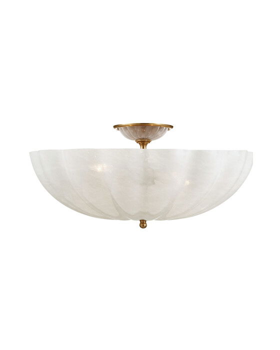 Rosehill av AERIN utstrålar en subtil, feminin skönhet. Dess minimalistiska design kombinerar räfflat, vitt glas med diskret metallarbete i antik mässing. Den avger en varm, inbjudande glöd som passar minimalistiska utrymmen eller traditionellt inredda rum.